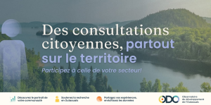 L’Observatoire du développement de l’Outaouais, l’ODO, vous invite à participer aux consultations citoyennes qui auront lieu dans toute la région. C’est une occasion unique de partager vos idées, vos préoccupations et votre réalité sur des sujets qui touchent directement votre vie quotidienne. Les thèmes abordés incluront, entre autres, les services aux familles, la qualité de […]