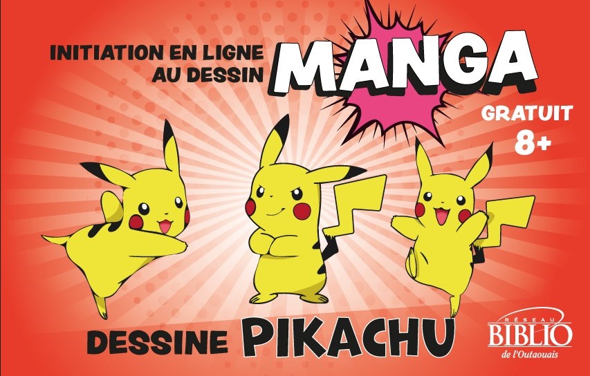 Dessine Pikachu Initiation en ligne au dessin manga 27 octobre 2022 à 18 h Atelier GRATUIT 8 ans et + Cet atelier te permettra de découvrir les bases du dessin manga, et de réaliser un des Pokémons les plus populaires, Pikachu ! Pour de plus amples informations et modalités d’accès à l’atelier offert par le […]