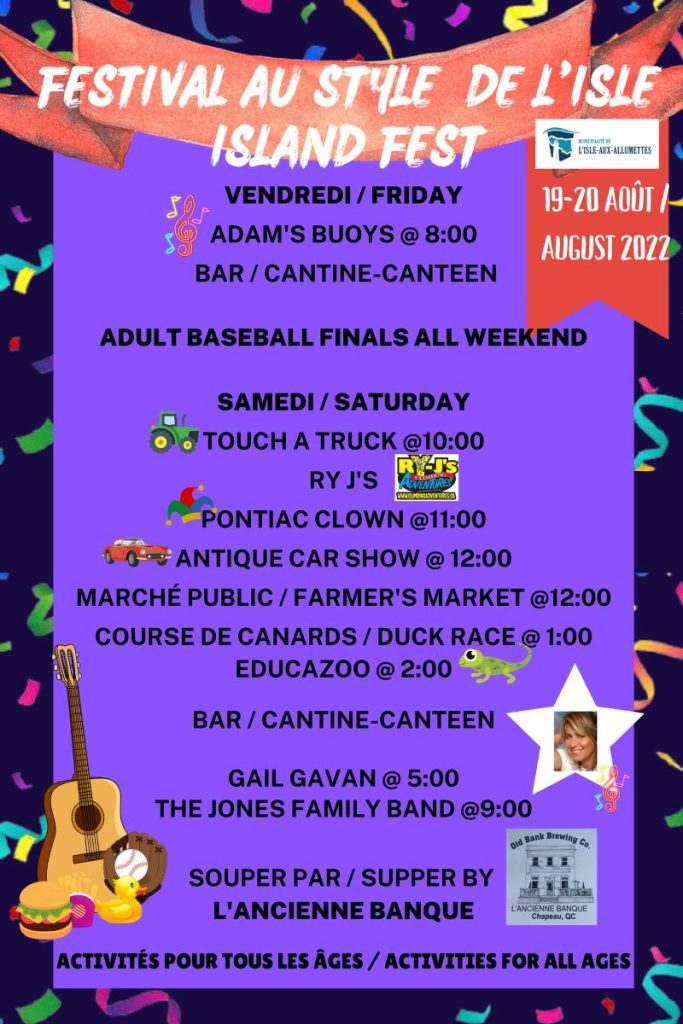 C’est cette fin de semaine qu’a lieu le Festival au Style de L’Isle, qui se déroulera dans le secteur Chapeau à L’Isle-aux-Allumettes. Il s’agit d’un retour pour cette activité, qui n’a pas eu lieu durant les deux dernières années, dû à la pandémie de COVID-19. L’agente en développement communautaire de L’Isle-aux-Allumettes, Chantal Lair, a donné […]