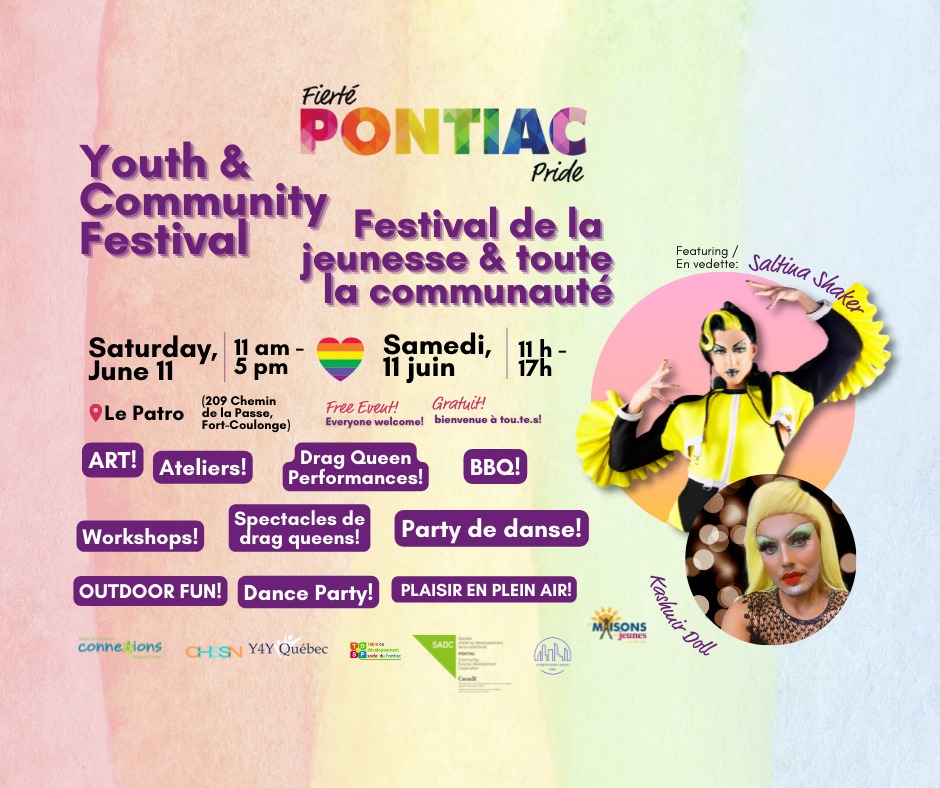 Fierté Pontiac organise ce samedi un festival pour les jeunes et toute la communauté. L’évènement aura lieu au Patro de Fort-Coulonge Mansfield samedi 11 juin de 11h à 17h. La programmation a été dévoilée et Michele Gagnon vient nous en donner plus de détails en entrevue.