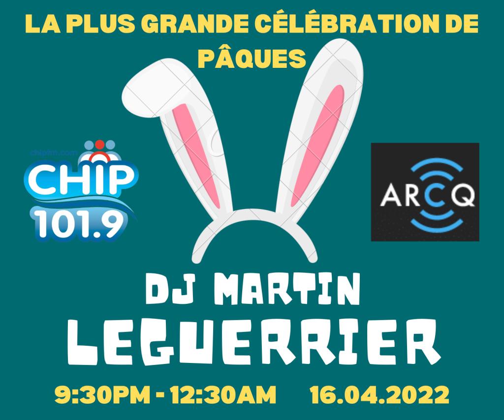 Tout de suite après la partie de hockey des Canadiens de Montréal, ce samedi 16 avril, CHIP 101,9 présentera le « Spécial de Pâques de DJ Martin Leguerrier ».