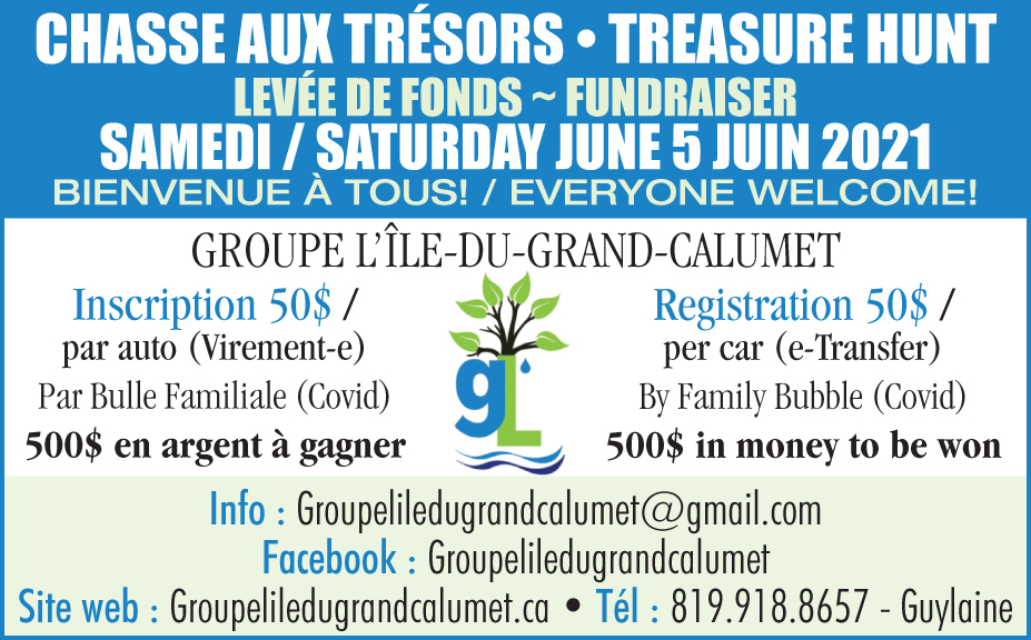 La Chasse aux trésors est une façon amusante de ramasser de l’argent afin de mettre en valeur les attraits touristiques, la culture et le patrimoine de la municipalité de L’Île-du-Grand-Calumet. La date limite de l’inscription est le samedi 29 mai. The Treasure Hunt it’s a way to raise money to develop the tourist attractions, culture […]