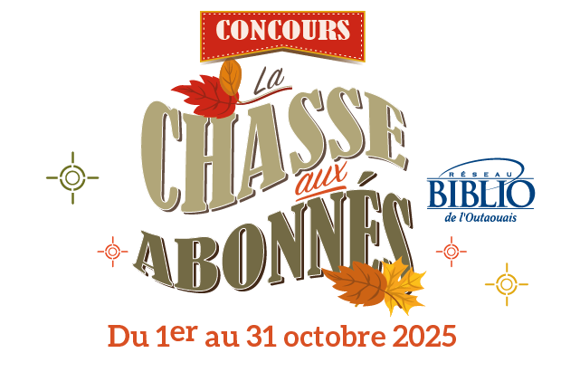 Du 1er au 31 octobre, le Réseau BIBLIO de l’Outaouais organise le concours « La Chasse aux abonnés ». Pour chaque emprunt de document, papier ou numérique, livre, revue, jeu vidéo, film sur DVD, jeu de société, etc., dans l’une des bibliothèques membres du Réseau BIBLIO de l’Outaouais ou sur l’une des plateformes numériques offertes par […]