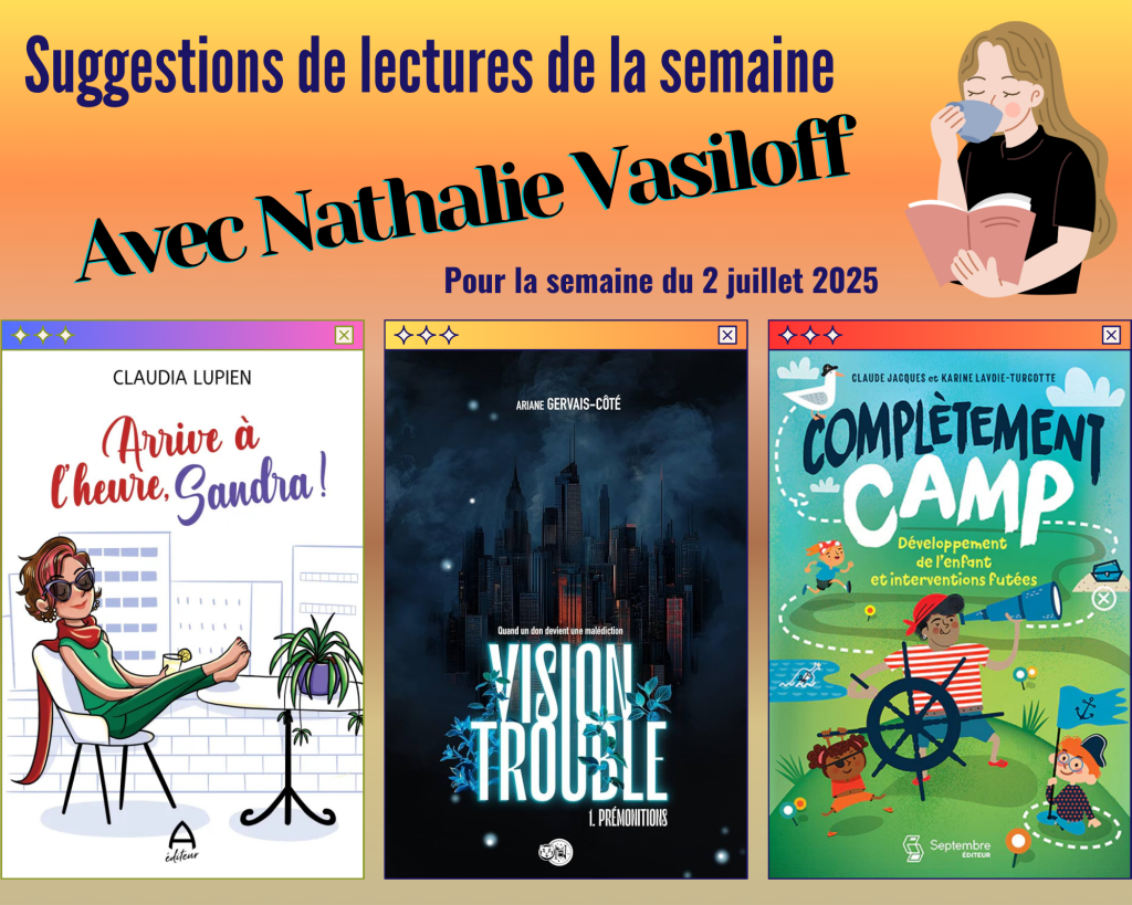 Comme à chaque semaine, notre animatrice chevronnée, Nathalie Vasiloff, partage avec nous ses trois coups de coeur littéraires de la semaine et nous propose une belle entrevue cette fois-ci avec l’autrice Claudia Lupien pour nous présenter son roman Arrive à l’heure Sandra! Les livres présentés cette semaine par Nathalie sont: Arrive à l’heure Sandra ! […]