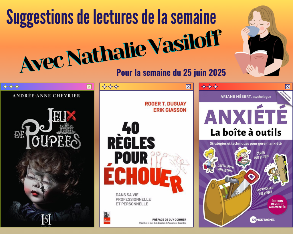 Comme à chaque semaine, notre animatrice chevronnée, Nathalie Vasiloff, partage avec nous ses trois coups de coeur littéraires de la semaine et nous propose une belle entrevue cette fois-ci avec l’autrice Andrée-Anne Chevrier pour nous présenter son roman d’horreur Jeux de poupées. Les livres présentés cette semaine par Nathalie sont: Jeux de poupées – Andrée-Anne […]