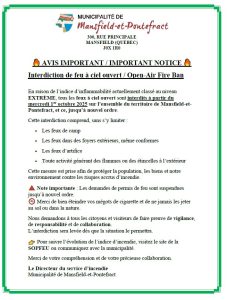 AVIS IMPORTANT – INTERDICTION DE FEU À CIEL OUVERT