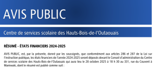 Avis Public – Résumé des États Financiers 2024-2025 Le 28 Octobre à Maniwaki