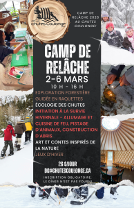 En nouveauté pour 2026, le Parc des Chutes Coulonge lance un camp de relâche offrant aux enfants la possibilité de profiter pleinement de leur congé scolaire grâce à une programmation pratique et dynamique en plein air, dans un environnement naturel exceptionnel. Le camp proposera des jeux d’hiver et des activités extérieures coopératives, des défis utilisant le parcours de cordes basses, ainsi qu’une initiation à des compétences de base en survie en plein air telles que l’allumage de feu et la cuisine sur le feu, la construction d’abris, le pistage animalier et la raquette. Le programme met l’accent sur l’exploration, le développement de la confiance en soi et l’apprentissage par l’expérience directe en nature. L’inscription est obligatoire et les places sont limitées.