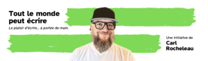 Carl Rocheleau has had to balance family life, his teaching career, and his writing while managing severe ADHD. The author of bestselling books such as the true-life account L’enlèvement, the horror novel Benoit, and the romantic comedy L’amour est dans le champ, Carl now aims to make writing accessible to everyone. Drawing on his 23 years of publishing experience across multiple genres, he has already helped more than 5,000 Quebecers turn their ideas into stories through his workshops and lectures.