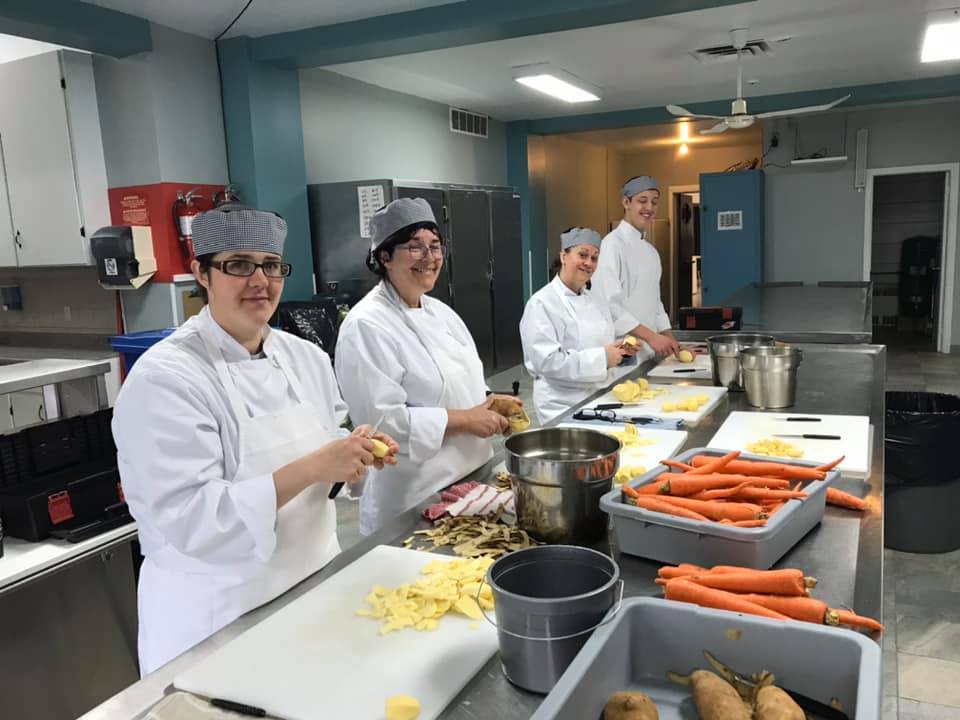 Philippe Lamontagne talks to Jacob Lavigne about the CFP cooking class first dinner service at the Knights of Columbus Hall in Fort-Coulonge.