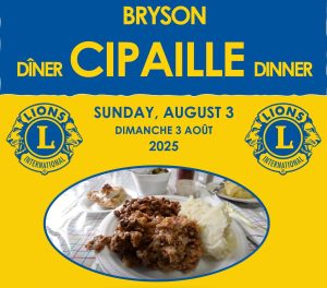 The Bryson Lions Club is putting on their annual cipaille supper this Sunday (August 3) starting at noon at their hall on rue Principale. Cipaille (or sea-pie) is a traditional layered meat pie, and the club has been holding the fundraiser for more than 25 years. President Betty Leach explained that preparations are already underway […]