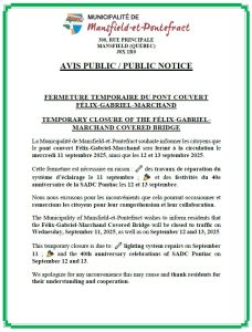 Publis Notice – Temporary Closure Of The Félix-Gabriel-Marchand Covered Bridge