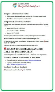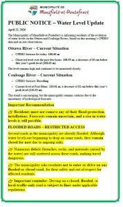 The Municipality of Mansfield-et-Pontefract informs residents that water levels on the Ottawa and Coulonge rivers are showing encouraging signs, but vigilance remains essential.