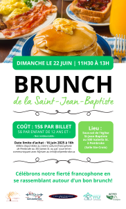 Le Centre culturel de Pembroke et les autres associations francophones de Pembroke organisent un brunch communautaire qui aura lieu le 22 juin. En entrevue avec Nathalie Vasiloff, Myriam Forest, du Centre culturel francophone de Pembroke et vice-présidente de la Société Saint Jean-Baptiste de Pembroke nous donne de plus amples détails: