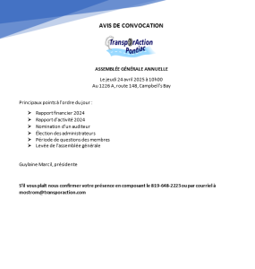 Avis de convocation – Assemblée Générale Annuelle 2025 TransporAction Pontiac