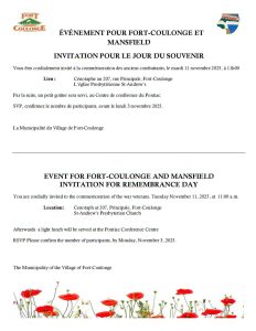Évènement pour les résidents de Fort-Coulonge/Mansfield pour le jour du souvenir – Event for Fort-Coulonge/Masnfield resident for Remembrance Day