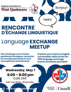 Rencontre d’échange linguistique le 7 mai / Language exchange meeting on May 7th