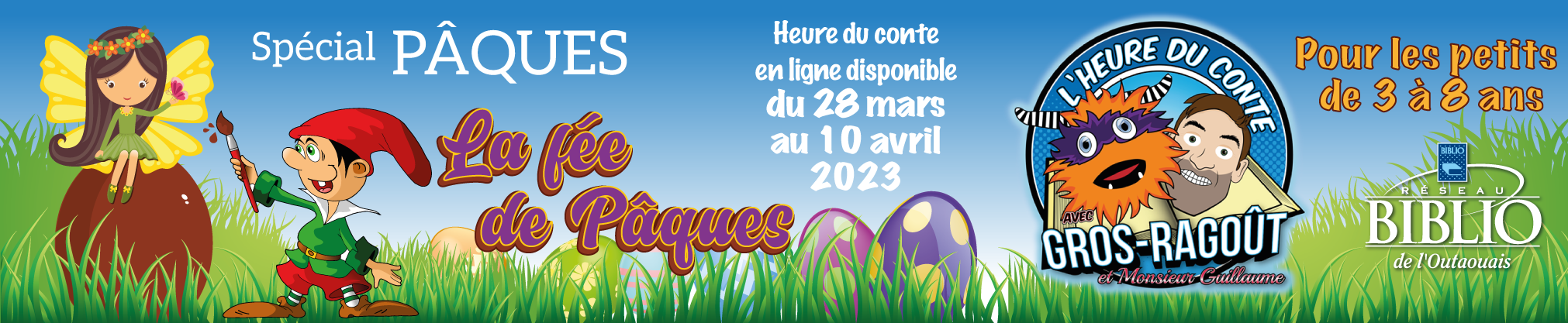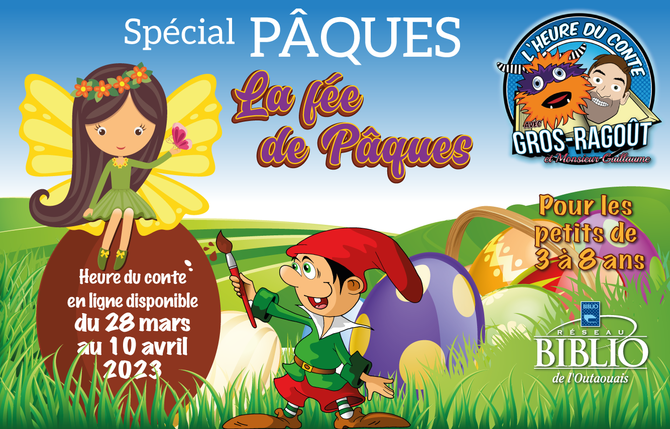 Les enfants de 3 à 8 ans ainsi que leur famille auront la chance d’écouter gratuitement La fée de Pâques. « Le lapin de Pâques vient de prendre sa retraite après des décennies à offrir du chocolat aux enfants. Ne trouvant pas de remplaçant (c’est la pénurie de main-d’œuvre pour tous…) le comité des fêtes pour enfants demande à la Fée des dents de le remplacer cette année. En sera-t-elle capable ? Après tout, elle déteste le chocolat qui cause tant de caries aux enfants! ».