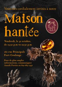 Ce vendredi 31 octobre,la Maison de la famille du Pontiac se transforme en véritable maison hantée pour faire vivre aux petits et aux grands une expérience d’Halloween des plus amusantes.