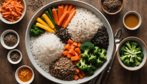 Selon le type de riz que vous choisissez, vous pouvez également bénéficier de fibres, de vitamines et de minéraux. Le riz brun ou complet, par exemple, contient davantage de fibres que le riz blanc, ce qui favorise la digestion, la satiété et la régulation du sucre sanguin.