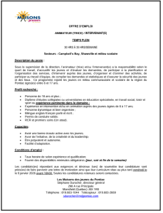 quart de travail, d’accueillir les jeunes et d’évaluer les demandes, de participer à la planification et