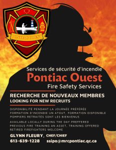 Le Service de sécurité incendie Pontiac Ouest recherche de nouveaux membres