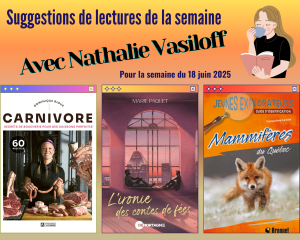 Comme à chaque semaine, notre animatrice chevronnée, Nathalie Vasiloff, partage avec nous ses trois coups de coeur littéraires de la semaine et nous propose une belle entrevue cette fois-ci avec l’autrice Dominique Rioux pour nous présenter son nouveau livre Carnivore.