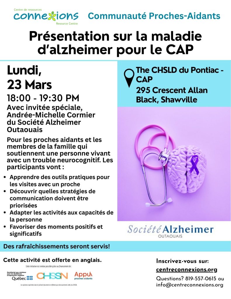 Le Centre de ressources Connexions tiendra une présentation sur la maladie d’Alzheimer destinée aux proches aidants et aux familles de personnes vivant avec un trouble neurocognitif. L’activité sera animée par Andrée-Michelle Cormier, de la Société Alzheimer Outaouais, qui partagera des conseils pratiques et des stratégies adaptées à la réalité des aidants. La conférence aura lieu […]