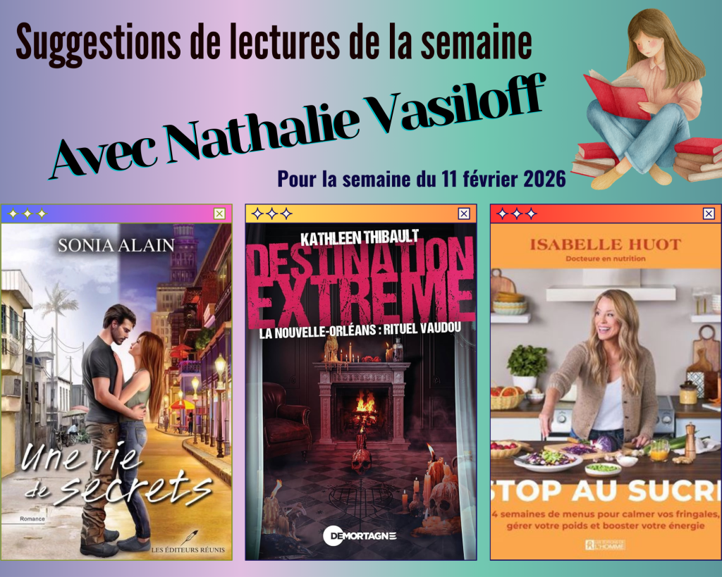 Chaque semaine, Nathalie Vasiloff vous ouvre les portes d’univers où les histoires prennent vie. Entre romans, récits inspirants et nouveautés littéraires, laissez-vous guider vers des lectures qui font rêver, réfléchir et vibrer. Voici les suggestions de la semaine: Une vie de secrets de Sonia Alain – Les Éditeurs réunis Dans Une vie de secrets, Sonia […]